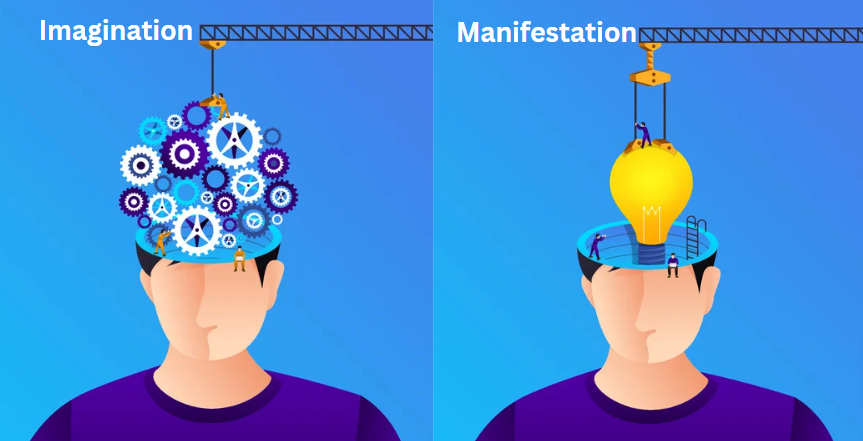 In summary, while imagination pertains to the mind’s ability to conceive and visualize ideas or scenarios, manifestation is about those ideas or desires becoming tangible or realized in some form. In many spiritual or personal growth philosophies, imagination is seen as the starting point or precursor to manifestation.