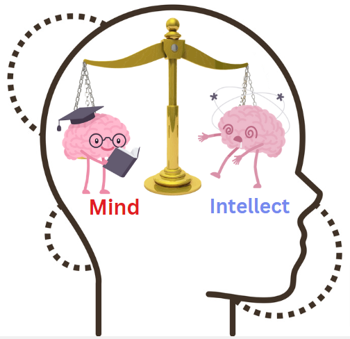First, let’s get to know the two characters. One is the intellect, and the other is the mind. They possess contrasting qualities and often don’t align unless we train them to synchronize